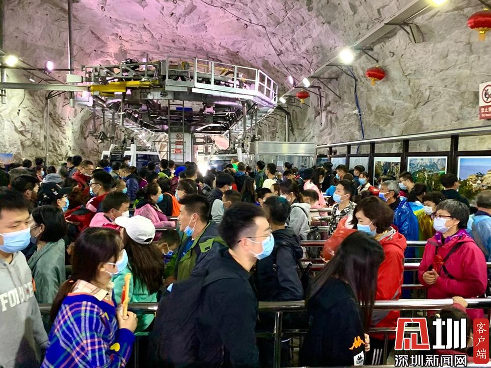 但感覺節(jié)日期間這條索道仍不敷應(yīng)用,游客排隊(duì)等候竟長達(dá)3小時(shí)以上。華山索道一覽。李仁奇攝。