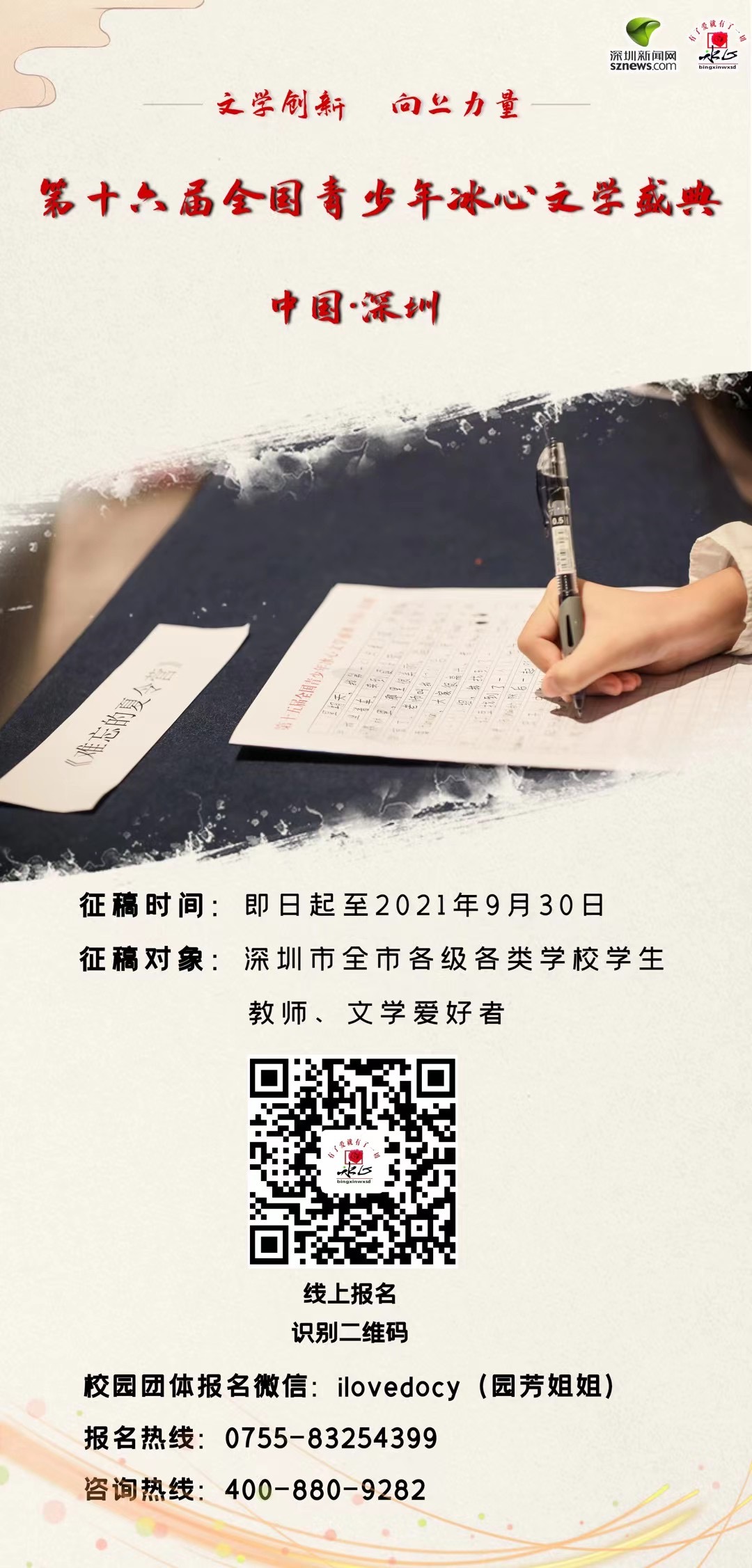 全國(guó)青少年冰心文學(xué)盛典組委會(huì)中國(guó)·深圳指定郵箱