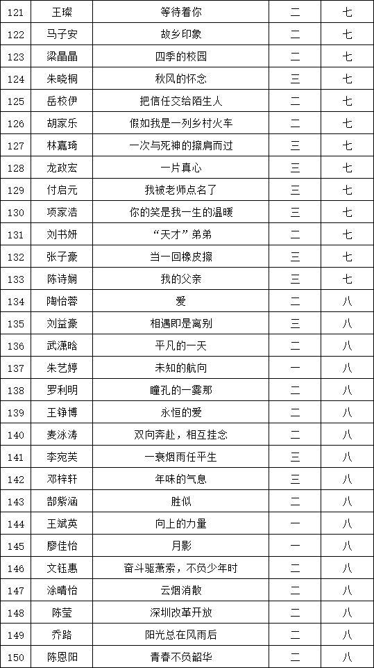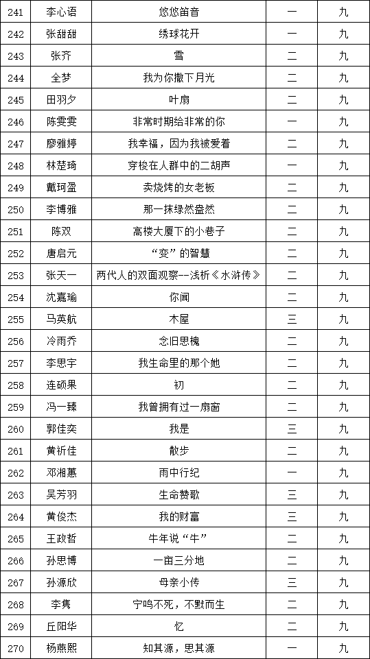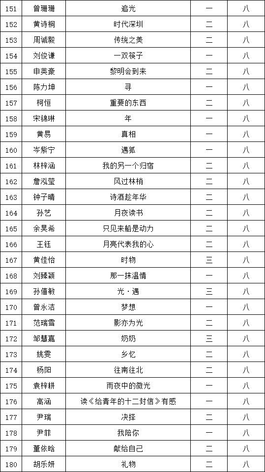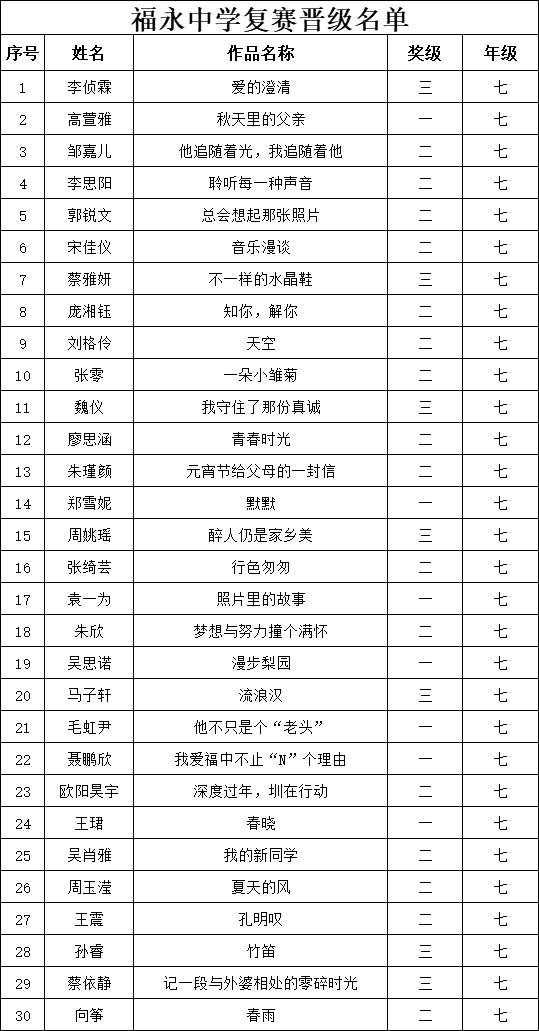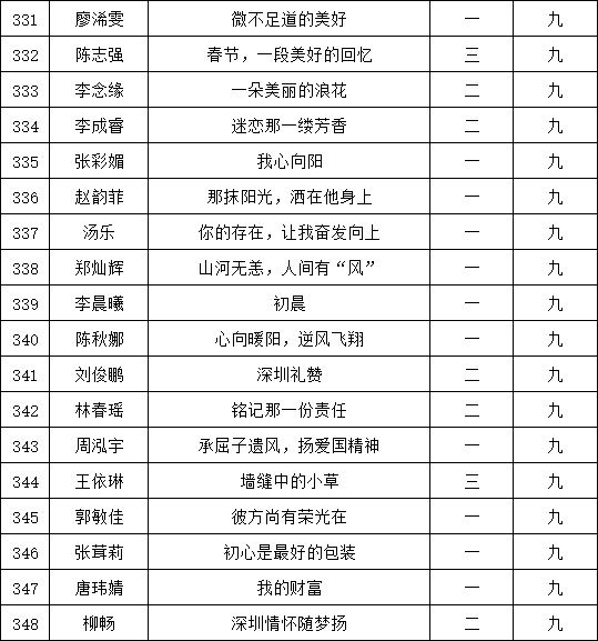 自2021年1月,活動征稿啟動以來,獲得了深圳市廣大中小學(xué)生、教師、文學(xué)愛好者的熱烈響應(yīng)積極參與,吸引了深圳百余所學(xué)校的上萬人關(guān)注報名?,F(xiàn)公布福永中學(xué)晉級復(fù)賽名單如下: