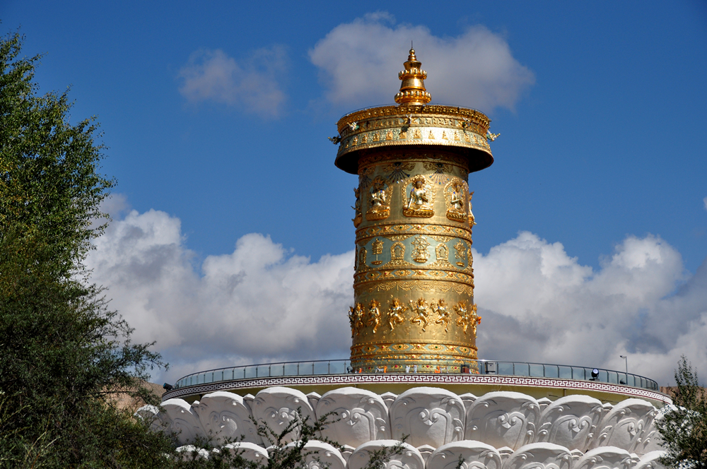 青海貴德縣的中華福運(yùn)輪筒高26.285米,直徑為10.22米,底座高15米。2012年建成后,頂替甘肅肅南轉(zhuǎn)經(jīng)筒成為世界上最大的轉(zhuǎn)經(jīng)筒。李仁奇 攝