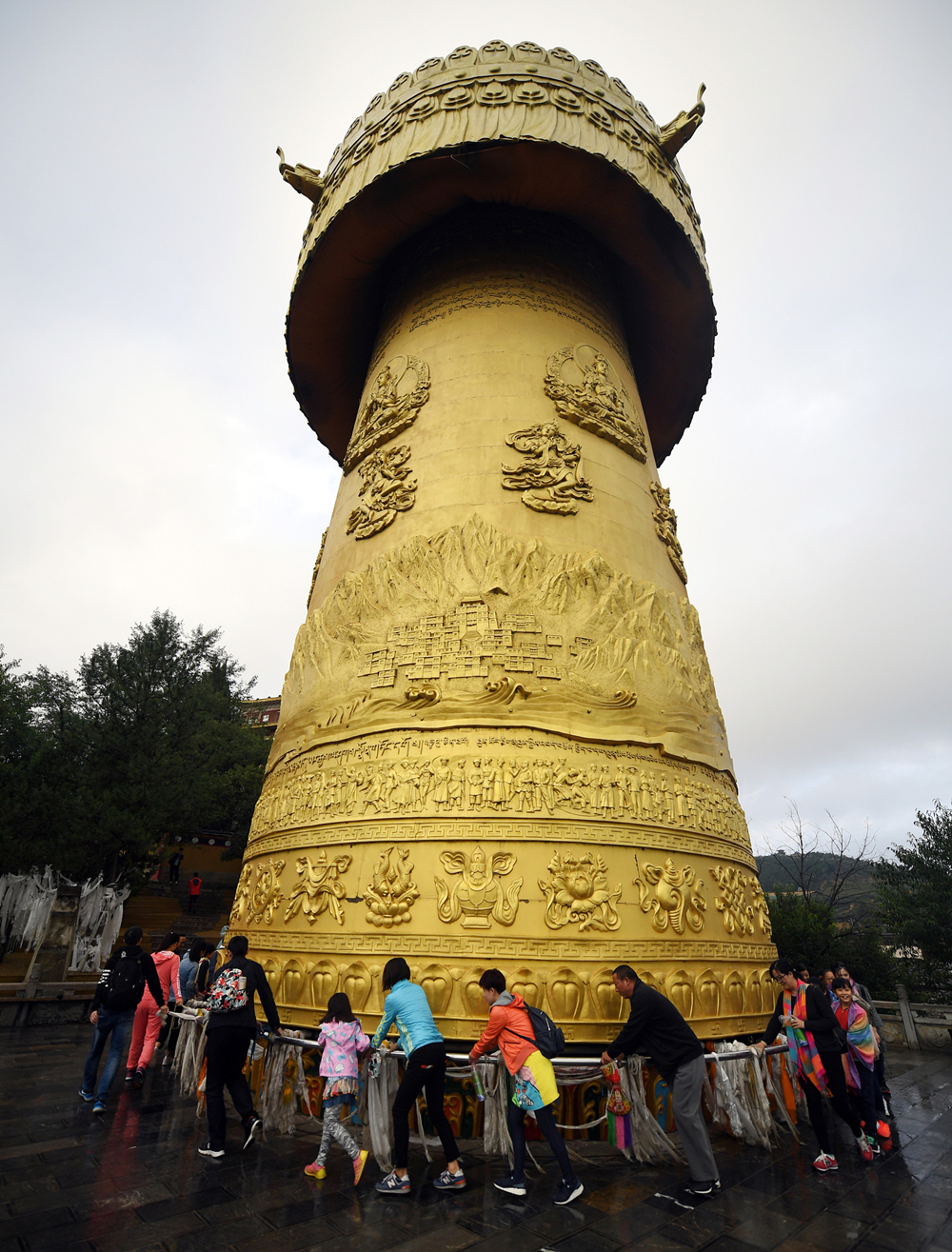 隨著我國藏傳佛教信徒聚居區(qū)經(jīng)濟(jì)社會(huì)的發(fā)展,從2009年起,在云南、青海、四川、甘肅四省先后建起了5座領(lǐng)先一時(shí)的“世界最大轉(zhuǎn)經(jīng)筒”。李仁奇 攝