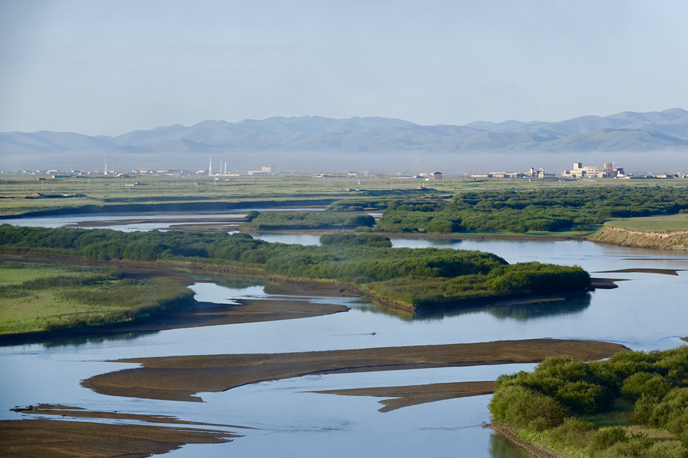 清晨,云霧籠罩,遠(yuǎn)處高聳的群山、山下的房子和九曲黃河若隱若現(xiàn),讓人仿若置身仙境。李仁奇 攝
