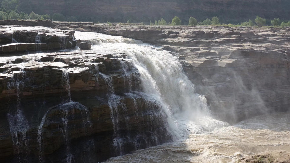 瀑布上游黃河水面寬300米,在不到500米長的距離內,被壓縮到20-30米的寬度。1000立方米/秒的河水,從20多米高的陡崖上傾注而下,形成”千里黃河一壺收”的氣概。這也是第四套人民幣50元紙幣背面的取景地。李仁奇 攝