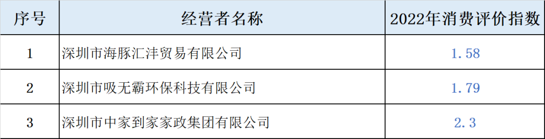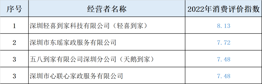 深圳市消委會(huì)公布2022年家政行業(yè)消費(fèi)評(píng)價(jià)指數(shù)排行榜