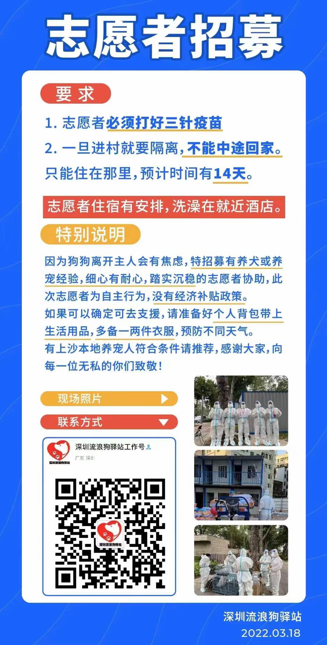 此外,為防止后續(xù)安置寵物數(shù)量增多出現(xiàn)人手不足的情況,深圳動(dòng)物相關(guān)的公益組織也發(fā)起了志愿者征集,具體要求和聯(lián)系方式見下圖。