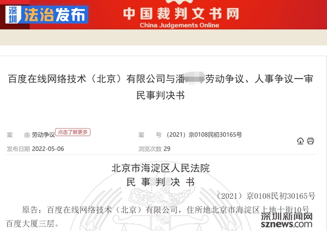 讀特客戶(hù)端·深圳新聞網(wǎng)2022年5月12日訊(記者 張玲 翁任瑩 實(shí)習(xí)生 趙薇)5月6日,中國(guó)裁判文書(shū)網(wǎng)披露的一起案件顯示,百度公司前員工潘某某離職后入職字節(jié)跳動(dòng),被百度告上法庭,理由是違反競(jìng)業(yè)限制義務(wù)。北京市海淀區(qū)人民法院最終判決潘某返還百度公司為其支付的競(jìng)業(yè)限制補(bǔ)償金214800元,同時(shí)判決潘某某向百度公司支付競(jìng)業(yè)限制違約金859200元,繼續(xù)履行對(duì)百度公司的保密義務(wù)。