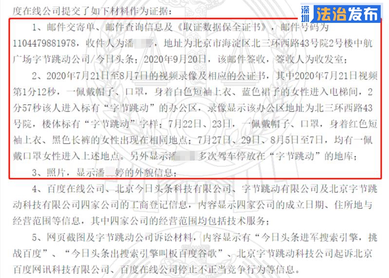 有一個(gè)細(xì)節(jié)值得注意:百度公司不僅向字節(jié)跳動(dòng)辦公地址寄去收件人為潘某某的快遞,而且向法庭提供了潘某某出現(xiàn)在字節(jié)跳動(dòng)辦公區(qū)、駕車(chē)停放在字節(jié)跳動(dòng)地庫(kù)等多個(gè)視頻錄像,這些舉動(dòng)被網(wǎng)友解讀為現(xiàn)實(shí)版諜戰(zhàn)大片。很多人從案件看到互聯(lián)網(wǎng)行業(yè)激烈的人才爭(zhēng)奪戰(zhàn)和同業(yè)競(jìng)爭(zhēng)的殘酷,也再次感受到競(jìng)業(yè)限制的威力。