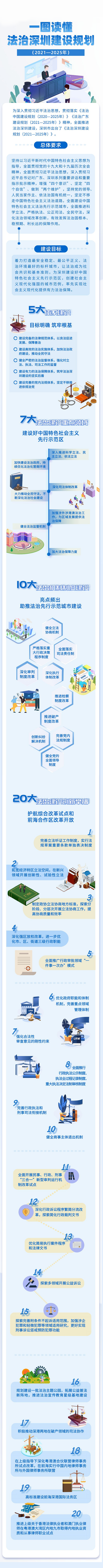 讀特客戶(hù)端·深圳新聞網(wǎng)2022年7月28日訊(記者 翁任瑩)建設(shè)5大體系,在7大法治建設(shè)重點(diǎn)領(lǐng)域發(fā)力,推出10大法治機(jī)制制度建設(shè),推出20大法治建設(shè)創(chuàng)新舉措……為打造安全穩(wěn)定、公平正義、法治環(huán)境最好的標(biāo)桿城市,深圳打算怎么做?一張長(zhǎng)圖了解最近出臺(tái)的《法治深圳建設(shè)規(guī)劃2021-2025年》。
