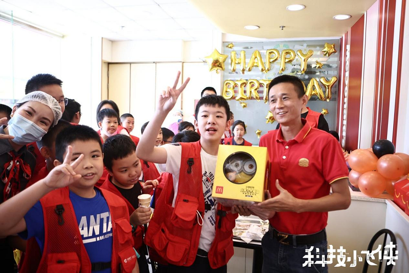 值得一提的是,成長(zhǎng)營(yíng)第二天還迎來了一位“小飛俠”的生日,在午飯間隙,孩子們一同在麥當(dāng)勞餐廳給這位小壽星唱起了生日歌,為他送上生日祝福。