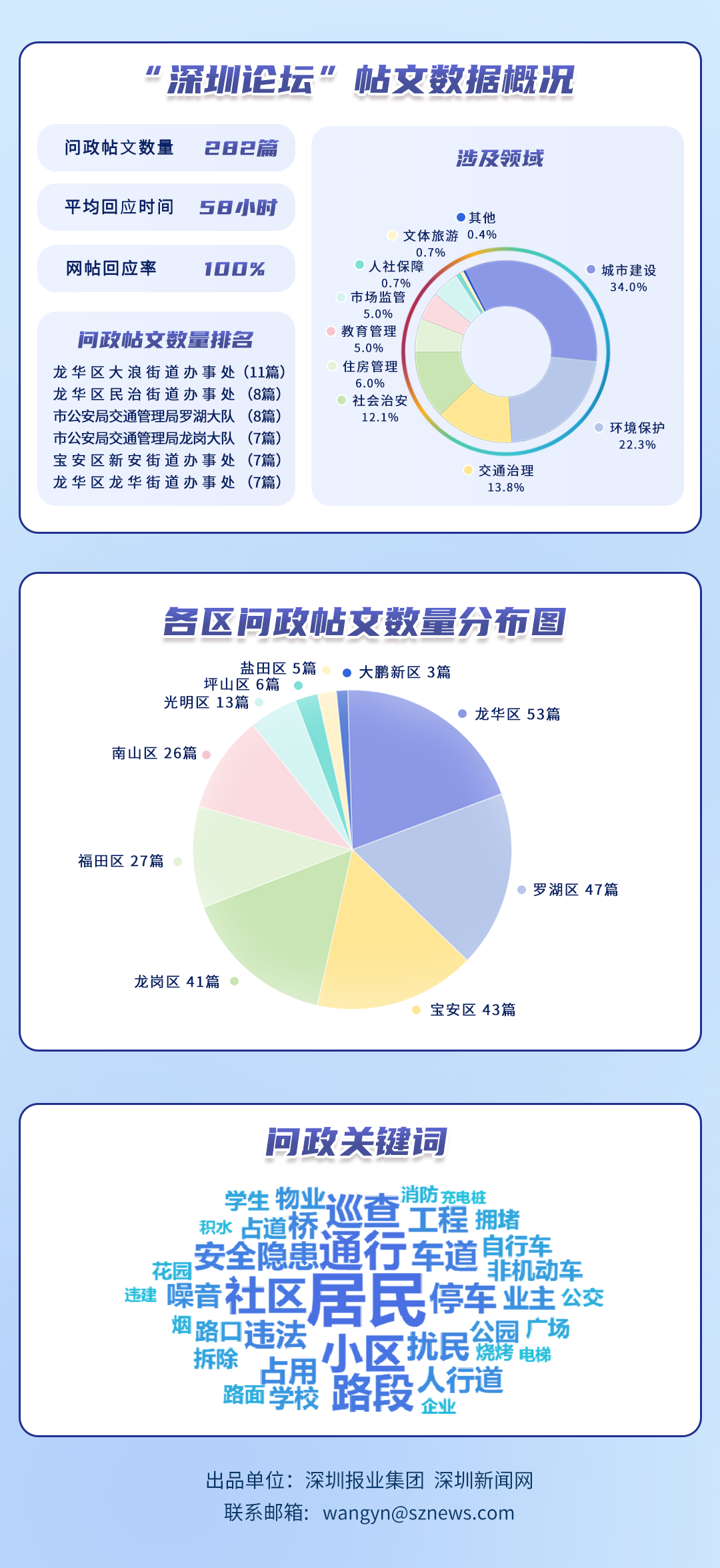 為探尋媒體如何精準(zhǔn)賦能基層治理現(xiàn)代化的“深圳路徑”,深圳報(bào)業(yè)集團(tuán)正式掛牌成立“問政深圳”工作室,旨在進(jìn)一步推動(dòng)網(wǎng)絡(luò)問政工作的高效開展。為確保相關(guān)工作更加契合實(shí)際需求,深圳報(bào)業(yè)集團(tuán)深圳新聞網(wǎng)按照“最快速度辦結(jié)”的總體要求,將原有月度榜單創(chuàng)新升級(jí)為“問政深圳紅黑榜”,并對(duì)評(píng)分體系進(jìn)行了細(xì)致優(yōu)化。該榜單從答政量、回應(yīng)率、響應(yīng)時(shí)效及解決成效等多個(gè)維度,對(duì)深圳各級(jí)黨政機(jī)關(guān)及公共企事業(yè)單位進(jìn)行答政實(shí)效評(píng)議,力求打造政府與媒體攜手共進(jìn)、創(chuàng)新基層治理現(xiàn)代化的新樣板,從而更好地回應(yīng)人民群眾對(duì)美好生活的熱切期盼。